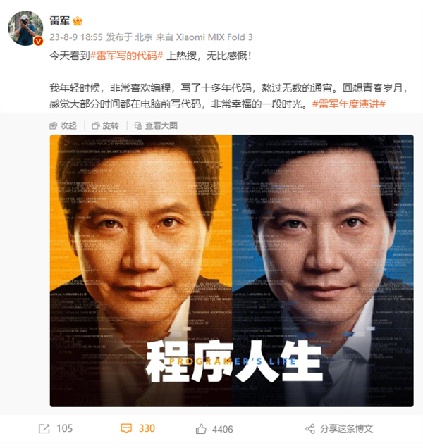 被赞代码像诗一样优雅!雷军:年轻非常喜欢编程 熬过无数通宵