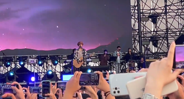 不像其他摇滚歌手,愿意多说两句调动气氛,朴树在台上显着很拘谨。他每唱完一曲都要换一把吉他,期间不时还要鞠上一躬,然后立刻全情投入下一曲。演唱的氛围越来越热烈,期间人们还集体喊起了“朴树牛逼”,即使我们站在很远的位置,也能听到这阵呐喊。