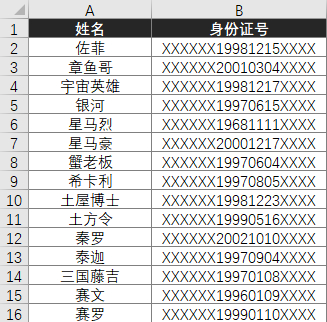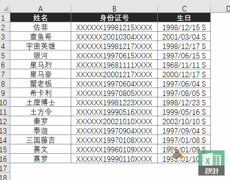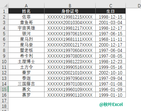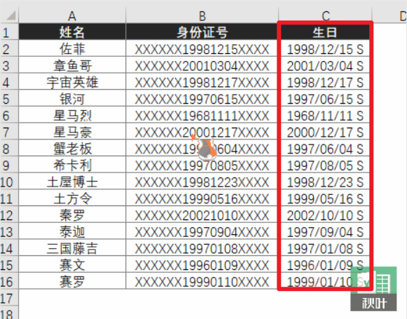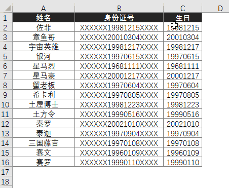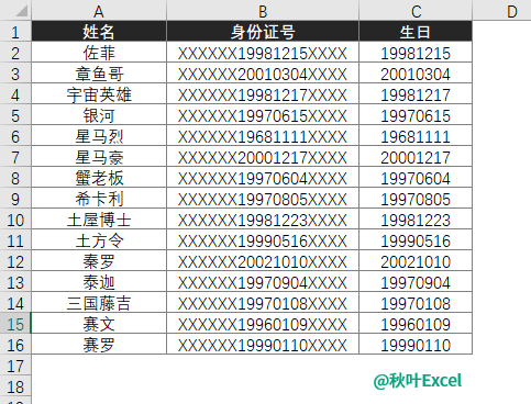 需要从下列表格中,提取出各位员工的生日。