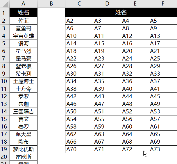 也是利用替换功能和占位,从而将一列数据转换成多列,两者有异曲同工之妙。