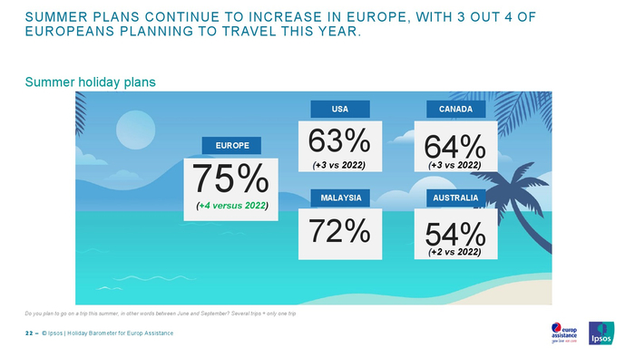 益普索和优普援助发布了“2023年假日晴雨表”,分析了欧洲、北美、亚洲和大洋洲假日旅行的近况。