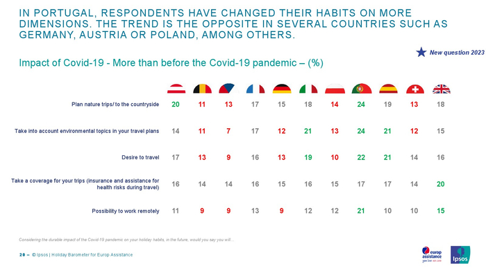 去年已经观察到的回归国际旅游的趋势今年得到了证实,但并非所有国家都是如此:52%的欧洲人计划出国旅游(比2022年增加4个百分点)。同样的趋势也出现在澳大利亚(50%,增加14个百分点)。