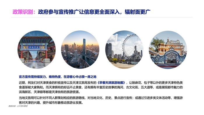 政策识别:对于官方管理扶持的力度以及一些城市文旅活动,消费者感知良好,期待在城市形象的营销与传播中发力更多。