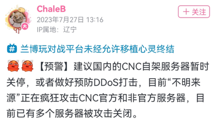 与此同时,《心灵终结》唯一指定官方联机平台CNCNET遭受不明来源的DDoS攻击,大量玩家反馈他们平日里使用的服务器歇菜了一整天,而这显然不是CNCNET平台日常里的服务器抽风现象。