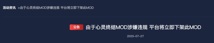 证据确凿,百口莫辩,到了这一步,兰博玩似乎也已经失去了自证的动力,一周之后,兰博玩主动撤下了《心灵终结》,并祭出了他们的杀手锏:“因存在不良价值观导向以及涉嫌抹黑国家形象,我们决定下架《心灵终结》MOD。”
