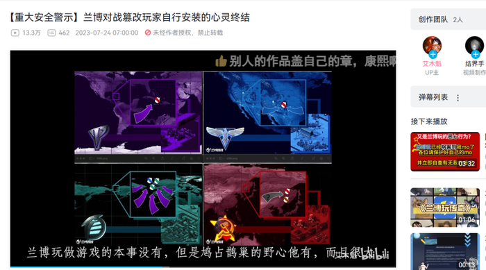 早在《心灵终结》上架之前,兰博玩就已经作为反面教材出现在了红警MOD玩家们的面前,今年年初,以B站UP主“艾木魁”为首的一批玩家痛斥兰博玩平台轻视MOD版权,放任美术素材盗用等现象不管,甚至还推出地图内购付费机制,严重破坏了MOD社区互利互助开放共享的原则与氛围。