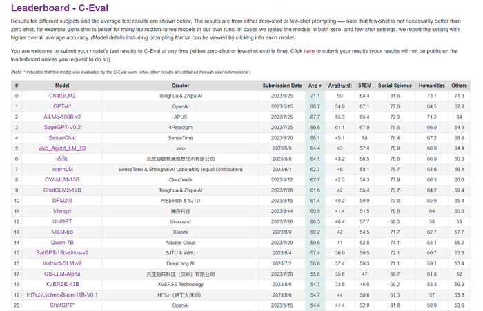 vivo 大模型云端方案现身 C-Eval,部分指标接近 GPT-4