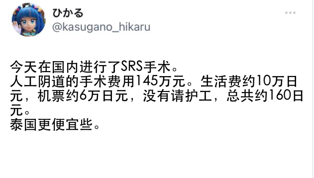 Ta曾表示过自己接受了变性手术,并罗列出所花的费用。且之前所贴出的日常照里,ひかる的装扮也极度女性化,甚至刻意打扮成女童的样貌,只不过面容很明显是中年男子。
