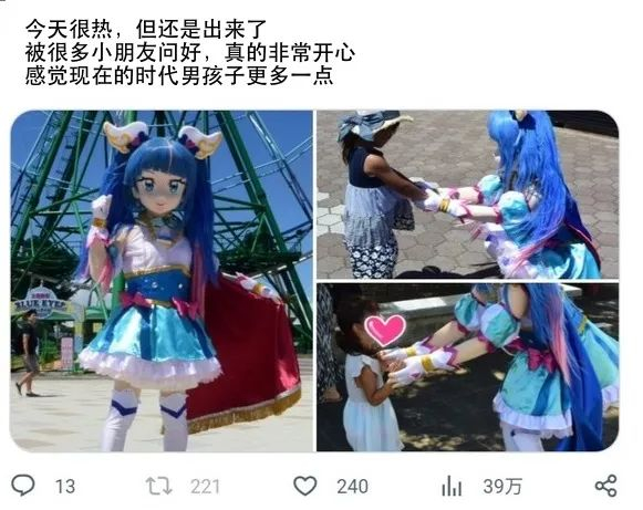 更重要的是,他扮演成《光之美少女》角色出没于公园,其实是出于自身意愿,并非是作为工作人员。