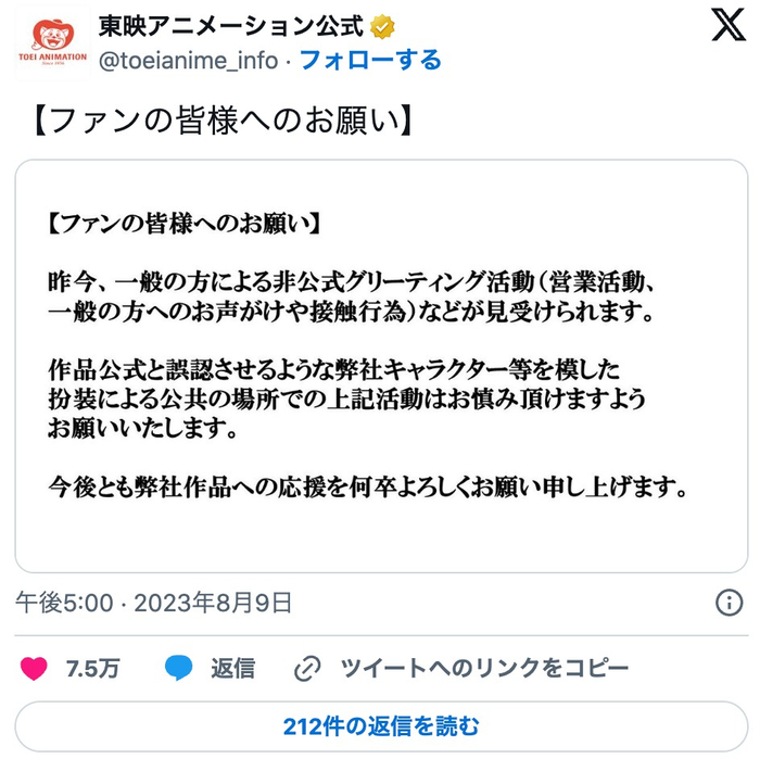 由于网民声浪过大,《光之美少女》的官方东映也火速下场,呼吁大家不要和非官方coser进行互动。