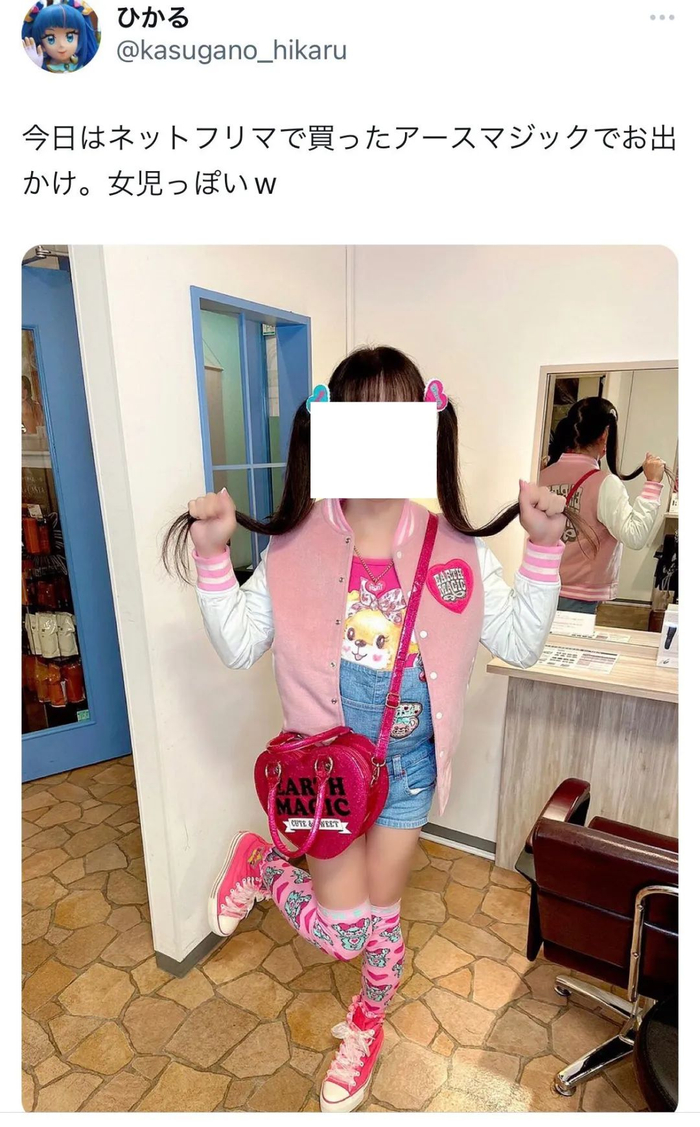 因事发于“萝莉控”情结较为常见的日本,这种现象显然让发现的网友感到警惕,于是再次探察ひかる的账号后,发现这位光之美少女其实身为男性——ta自称是一位伪娘,平时会穿女装。