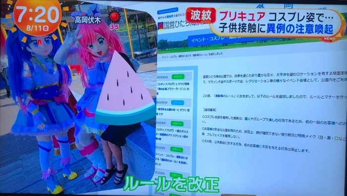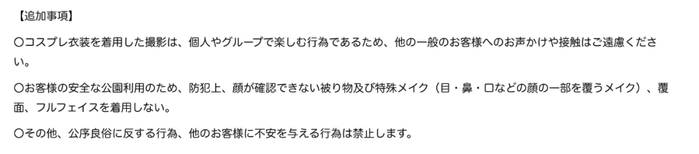 事发地常陸海浜公園也紧随其后,修改了院内规定:禁止cosplay者在园内和其他人进行交流,禁止佩戴遮挡全脸的面罩。