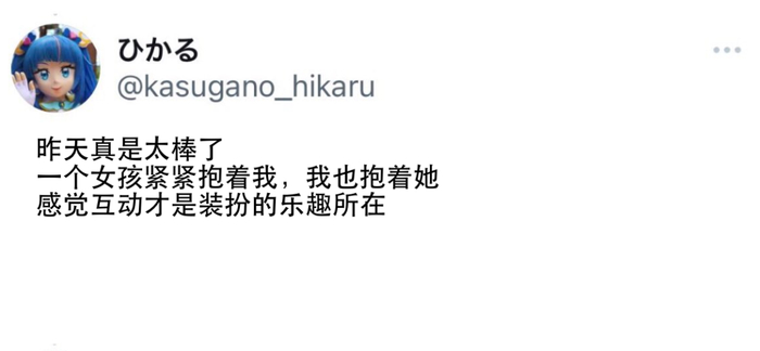 但重点在于,这位名为ひかる的coser,发表了诸多带有微妙感的推文——
