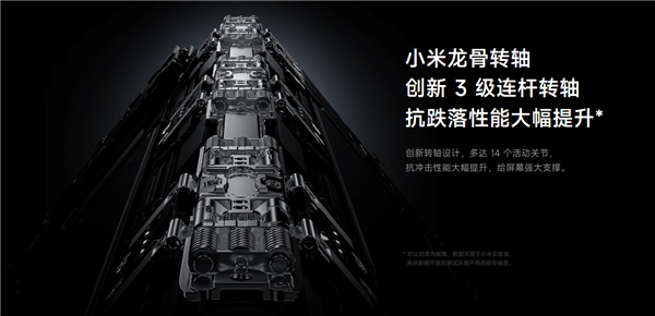 小米MIX Fold 3首发“龙骨转轴”,采用创新3级连杆结构,14个活动关节,198个转轴零件,配合新的“超级钢”材料,让转轴更精密、占用空间更小。
