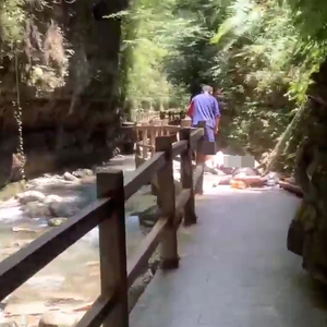 8月17日,有网友爆料称,在重庆黑山镇黑山谷景区,山上滑落木头砸到游客,致多人受伤。据其提供的现场视频显示,在一溪流旁的栈道上,疑似躺有伤员,一旁还有一名疑似安保人员在现场协调处理。
