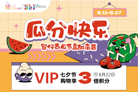 枯藤老树昏鸦,WIFI空调西瓜。在这个炎热的夏季,世贸中心为全城会员发放10万元吃瓜满减现金券,全场上百家品牌接券满500减30同时可叠加银联云闪付满300享7折(封顶100元)活动。优惠力度巨大。同时通过西瓜神捕手游戏,瓜瓜水果大巡游、夏季舞狮表演、跳蚤市场等活动、为这个暑期增添无限趣味。