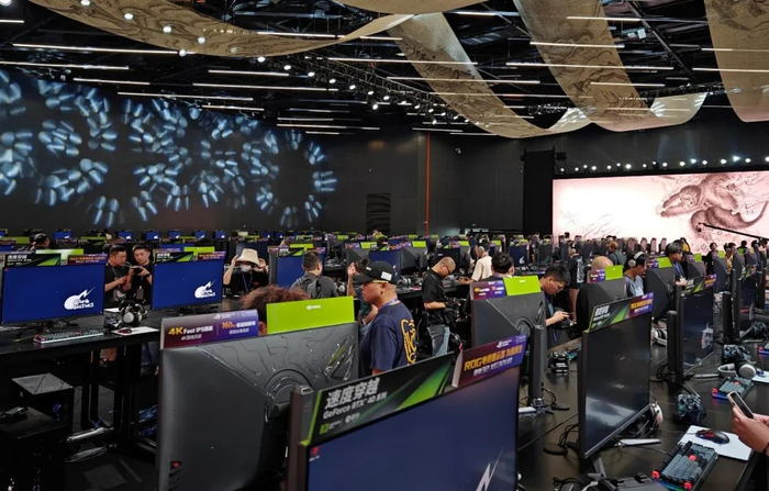 150台听起来不多,但现场看起来,却有500台的壮观感,这种感觉有些陌生。我注意到,进入游戏行业这些年来,来无论国内外,我都没有听过有哪家厂商组织过如此规模的线下试玩。即便有线下试玩活动,通常也会采用更加便利的游戏笔记本。如此规模的大屏台式机,每台机箱又统一锁在防止数据泄密的金属柜中,现场能很明显感觉到一种专业的威压,背后则是巨大的人力与物流工作。在NVIDIA负责帮忙协调硬件的朋友也跟我说,短短两周凑齐百台高性能PC试玩平台,确实很不容易。