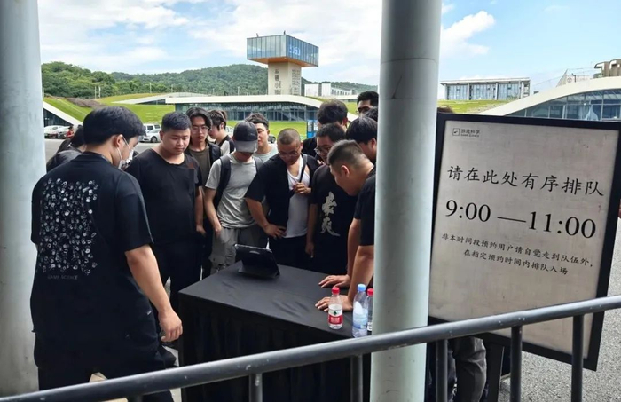 19日是媒体试玩日,我去试玩了一个下午。第二天上午我还没有离开杭州,便又去现场转了转。当时第一波玩家已经入场试玩,剩余的则在场外等候。有人掏出iPad开始同步播放场内的直播视频,身后很快围了一圈人观看。屏幕中的高手没能坚持到最后,大家集体发出惋惜的声音。“咱先预习一下招数,等会儿玩得更好”,一位玩家边看边跟同伴说,另一位玩家在打电话给朋友做功课:“打老虎用什么棍法好?”