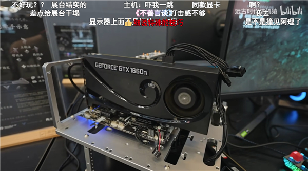 虽然现场电脑无法切出游戏,也无法安装软件,但是作为知名装机UP主,自带拆机工具去试玩也“不稀奇”,他找到而来一台没机箱的设备,拆下散热器发现CPU是英特尔酷睿 i7-8700,显卡则是GTX 1660 Ti。