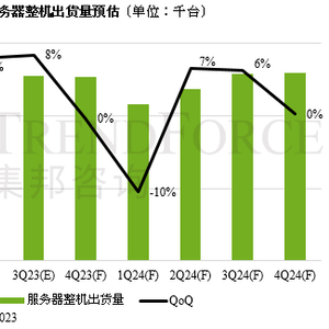 TrendForce:预计2024年全球服务器整机出货量同比增长仅2.3%