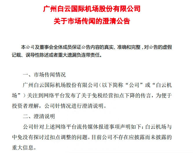 免税谈判扣点率下降?白云机场、上海机场、国泰君安回应传闻