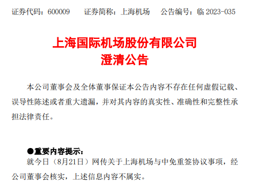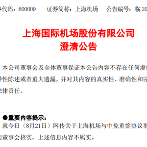 在8月21日发布的澄清公告中,上海机场表示,公司仍按照上述补充协议执行。