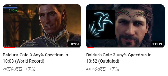 虽说目前这四个速通项目除Mae外还无人问津,但再等一阵,等更多玩家通关游戏、吃透游戏的内容和机制后,《博德之门3》的速通社区也将进一步壮大,贡献出更多令人瞠目结舌的项目和纪录来。