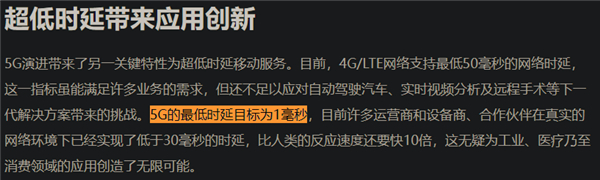 它继承了 5G “ 超低延时 ” 的特性,甚至比 5G 做的更好,直接把延迟干到了接近有线的微秒级。