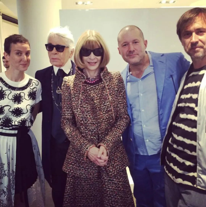 从左至右:Colette创意总监Sarah Andelman,时装设计师「老佛爷」Karl Lagerfeld,《Vogue》主编Anna Wintour,Jony Ive,工业设计师Marc Newson图片来自:businessinsider