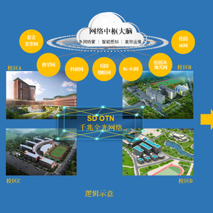 对于一校多区的高校,通过基础运营商提供的SDOTN智能全光网络实现网络互联,不同校区的学生均可通过5G签约后获得授权访问校区内网,不同校区之间的智慧应用也可以通过5G实现互动,让全校的5G融合为一张移动专网,提供低时延、大带宽的校园专网服务,从而可以把实力强的校区师资有效帮扶到其他校区,为学生、老师提供等同面对面的互动和学术交流,助力高校多校区的协同均衡发展。