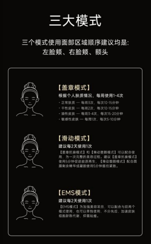 作为一款科技化的产品,其使用体验,兼顾的使用场景也是消费者极为关注的。IPOOO美容仪在这方面的设计也是匠心独运。产品设置了三大模式六种功能,可以让消费者轻松享受院线级美容护理。而三种美容模式,分别指盖章模式、滑动模式、EMS模式,可以按照使用个人肤质情况、使用频次、面部部位等进行精准调节,可以细致入微。