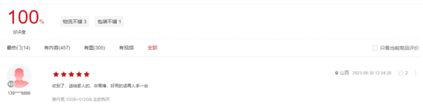 华为商城显示,华为Mate60 Pro目前有491条评价,全部都是五星好评,好评率百分百。有用户表示,该机简直太好用了,只能用完美来形容,强烈推荐,遥遥领先!手机注意到,不少用户评价都表示该机遥遥领先。还有一些有意思的用户说道:还没开机就感觉手机有杂音,放耳边一听,隐隐约约有四个字:“遥遥领先”。