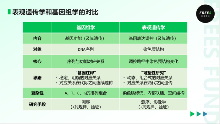 第二,从思路上,表观遗传关注细胞可塑性。基因组学关注比较稳定的“基因注释”,表观遗传更加突出“动态”和“适应”,更加贴近肿瘤、退行性疾病等疾病的生理特征。未来,表观遗传学或许能够给人们带来更多新的发现。