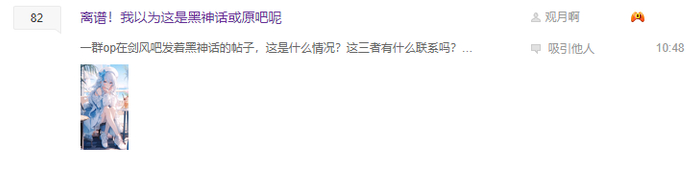相比其他互联网社交平台,贴吧属性更为混沌,任何用户都能发布任何主题的任何内容。然而即便以此为前提,“黑神话串子入侵剑风吧”这一话题登上贴吧热议榜,仍然让很多人不知做何反应。