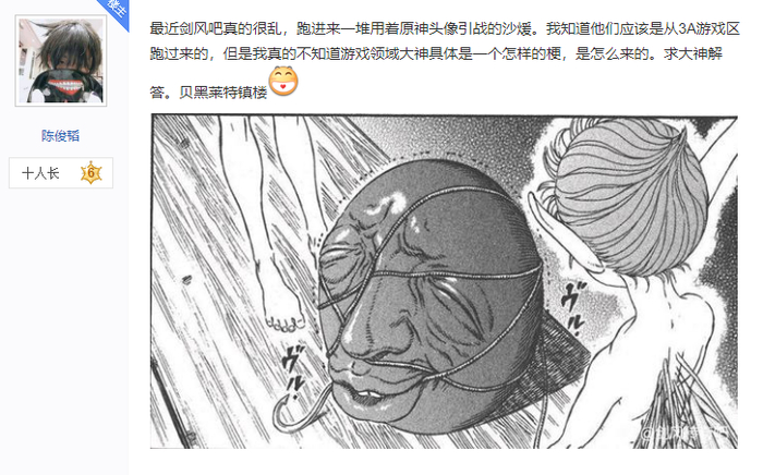 于是原住民开始呼吁正常的读者不要回复引战帖,希望尽快平息事态;有些吧友开始期待新的吧主降临,就像《剑风传奇》中的人们祈祷一位救世主出现;也有读者接受了混沌的现状,开始用更有乐子的方式安利起《剑风传奇》。