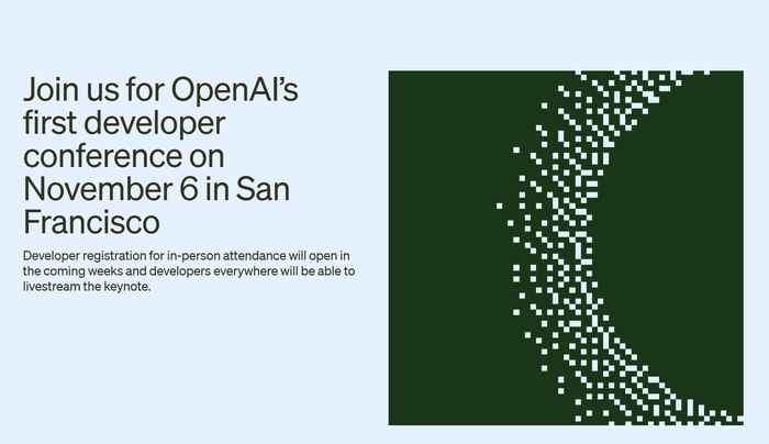 IT之家 9 月 7 日消息,随着 AI 大模型的爆火,OpenAI 日前在官网宣布,将于 11 月 6 日在旧金山举办首届开发者大会 OpenAI DevDay。