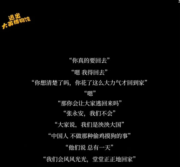某种程度上来看,《逃出大英博物馆》的出圈,正是品质化的体现。尤其是当剧情来到结局,更多的剧情被主创们以更节省成本的纯文字形式体现。但“中国人不做偷鸡摸狗的事”“总有一天,我们会风风光光、堂堂正正地回家”等振聋发聩的台词,依旧让《逃出大英博物馆》第三集也成为短剧上线以来口碑最好的一集。