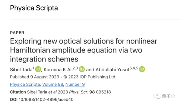 几天前,Physica Scripta杂志发表了一篇论文,旨在发现复杂数学方程的新解。