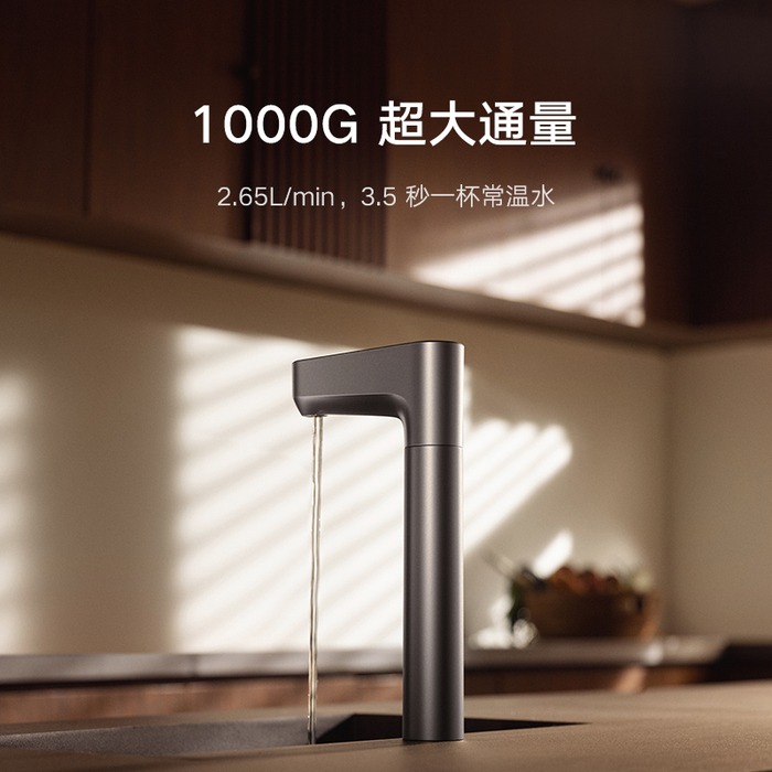 流速方面,1000G通量是行业中公认的黄金大通量,水流澎湃畅快。如今Q1000作为1000G净水的最终形态,让水流不受限的同时,带来了即热直出鲜开水的全能体验。