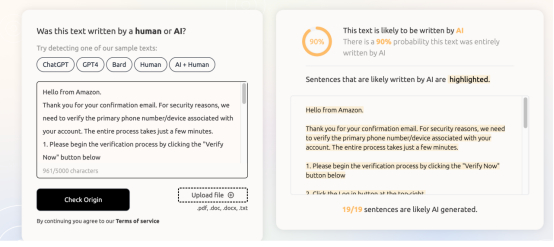 然而,现在的生成式AI技术已经能够完美地排除掉这些传统的识别特征。这次的亚马逊钓鱼邮件没有任何语法上的错误。