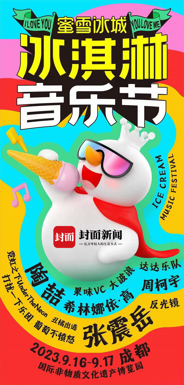 记者了解到,音乐节为粉丝们准备了成都特色的高颜值冰淇淋,还有打鼓蹦迪的“雪王大军”出没。可以想象,在现场传来的阵阵欢呼声中,一场“有吃、有喝、还有玩”的音乐盛宴将拉开序幕。