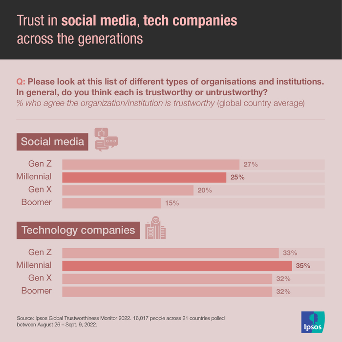 这个流言有一定的真实性。千禧一代更有可能信任社交媒体公司(25%),而婴儿潮一代只有15%这么认为。