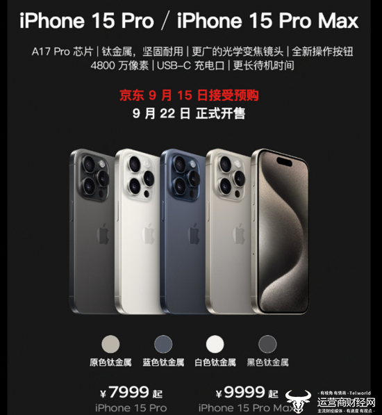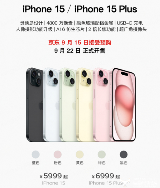 iPhone 15系列预售将于9月15日在京东开启,9月22日起正式发售。iPhone 15起售价为5999元,iPhone 15 Plus起售价为6999元,iPhone 15 Pro起售价为7999元,iPhone 15 Pro Max起售价为9999元。