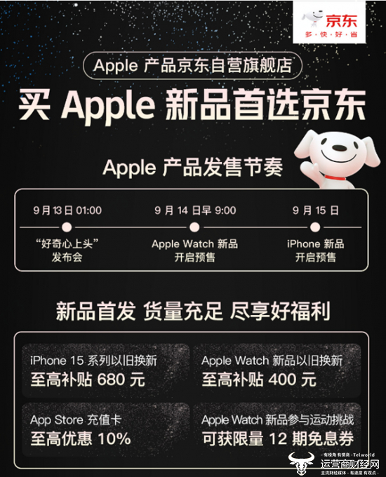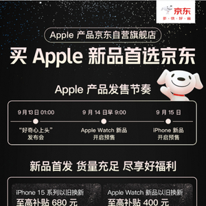 值得注意的是,今年京东针对Apple新品推出一系列购机权益,部分产品支持同城速配,开售当天最快1小时送达。此外,京东下单iPhone新品还可享以旧换新至高补贴680元,Apple Watch新品参与运动挑战赛享限量12期免息。