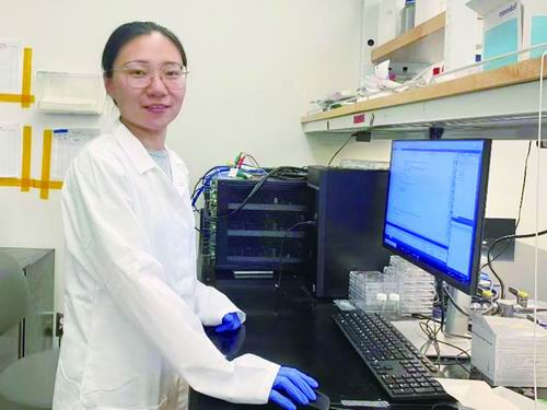 袁欣彤在实验室。