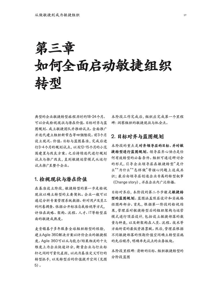 我们观察到大部分机构推进敏捷转型时往往缺乏从整体到局部、自上而下、清晰明确的目标,特别是在经营、交付效率等方面的量化指标。