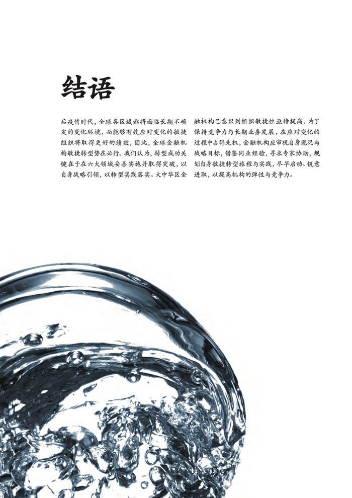 后疫情时代,全球金融机构敏捷转型势在必行。希望本白皮书能助力金融机构从行为敏捷“Doing Agile”走向组织敏捷“Being Agile”,在自身战略引领下,将敏捷融入组织DNA,从而真正提高机构韧性与竞争力,在新市场环境中成功突围。