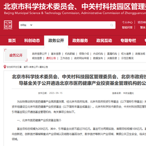 北京市科学技术委员会、中关村科技园区管理委员会、北京市政府投资引导基金关于公开遴选北京市医药健康产业投资基金管理机构的公告