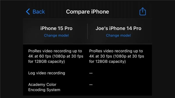据悉,苹果之所以在128GB iPhone 15 Pro上拿掉这一功能,是因为ProRes视频录制占用空间太大。