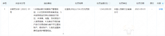 值得一提的是,9月1日,建行云南省分行因“未落实银行结算账户管理规定、占压财政存款或者资金、未按照规定对异议信息进行标注;未准确、完整、及时报送个人信用信息”等多项违法事实被中国人民银行云南省分行处警告,并处以154.3万元罚款。